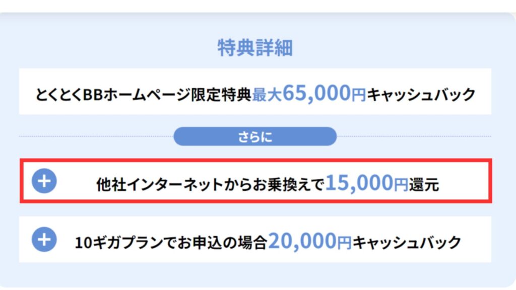 しょう中にも「GMOとくとくBB」はキャッシャバック金額が高いですよ。