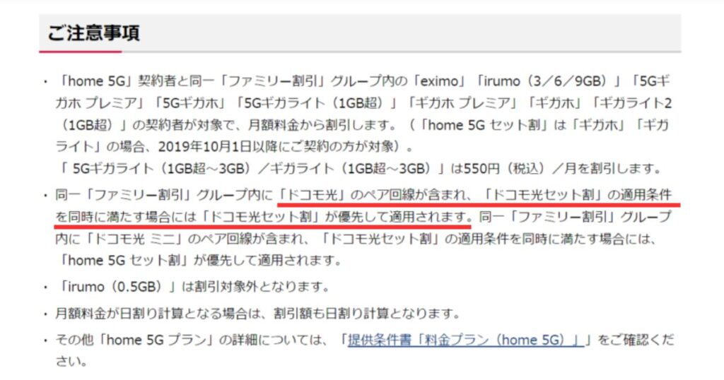 併用している場合、ドコモ光のセット割りが適用されるのが公式ホームページに記載されています。