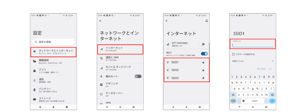 該当するSSIDを選択して、パスワードを入力すればネットの設定は完了します。
