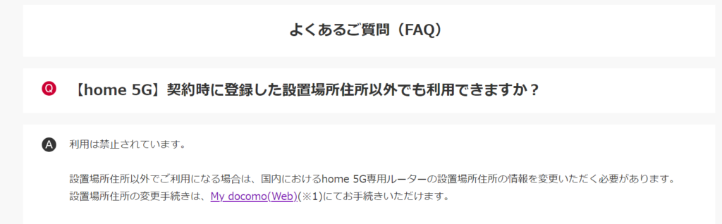 home5Gは登録した住所以外では使用できないので注意しましょう!
