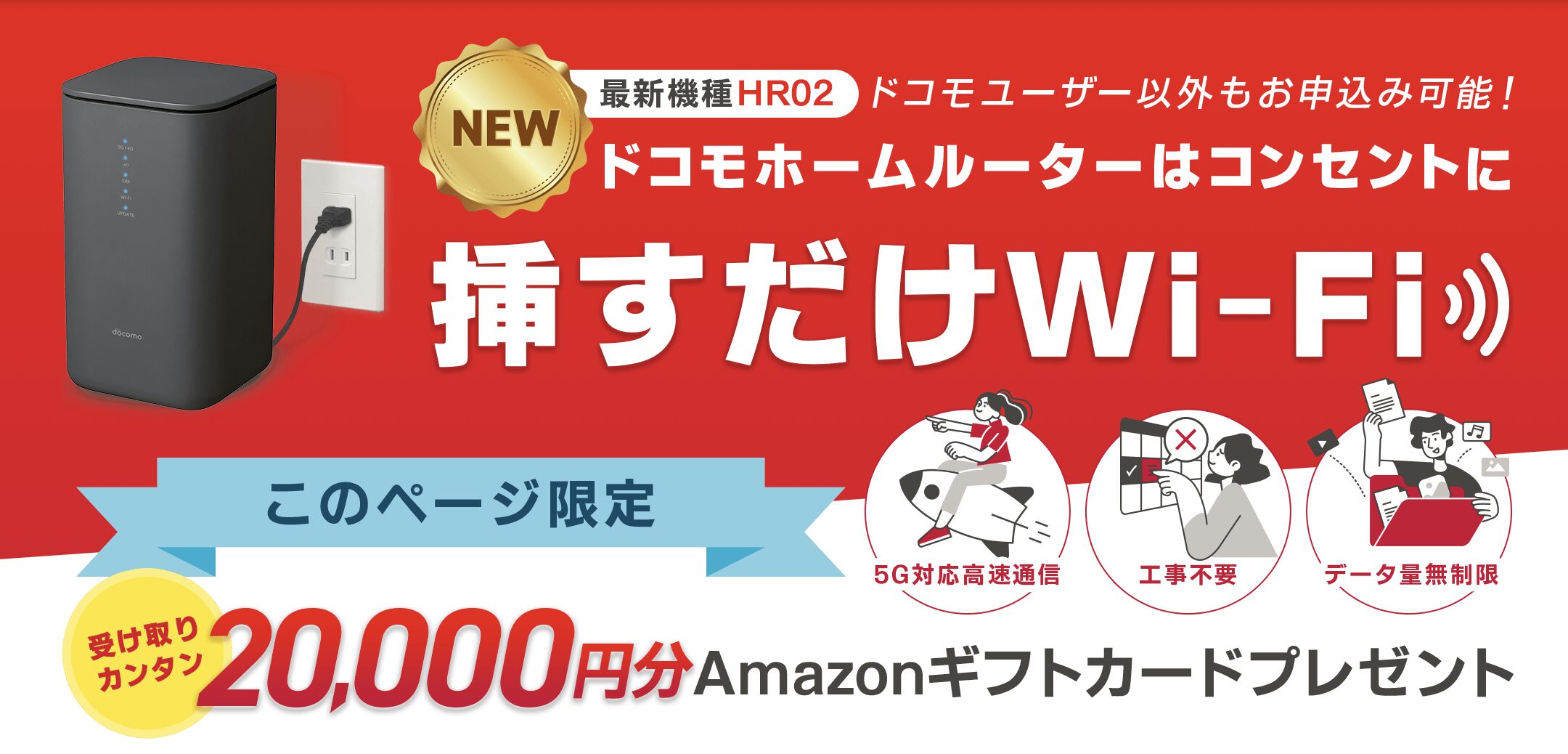 ・home5Gに乗り換えると最大20,000円分のキャッシュバックが受取れます。