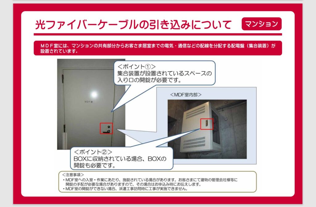 当日は、管理人さんがいるなら共有部のカギを借りたり、MDF室の操作をすることがあるので事前に伝えておきましょう。
