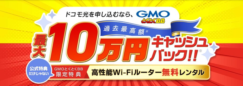 ドコモ光を申し込むなら「GMOとくとくBB」がおすすめです。