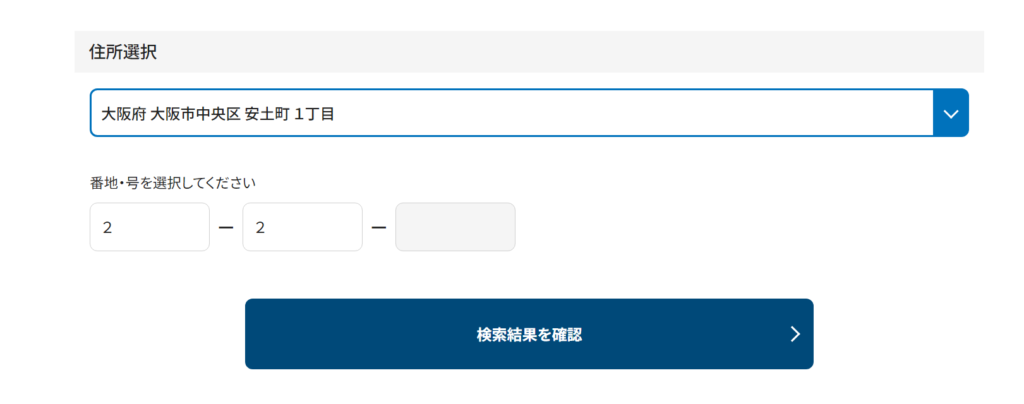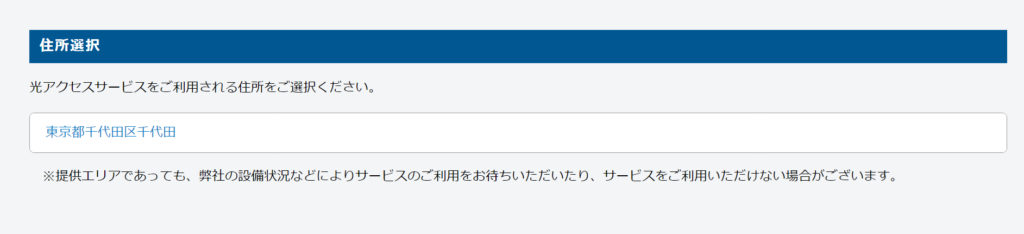 住まいの地域と異なるエリアで検索をすると、提供エリアの正しい結果が出ないので注意してください。