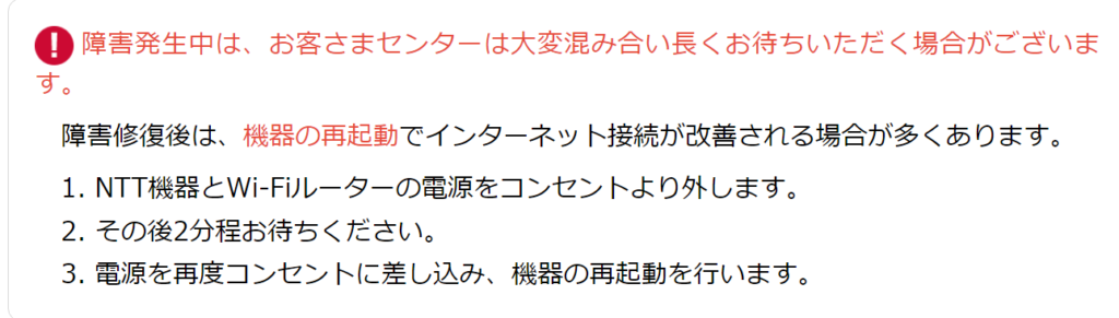 無線通信によるインターネット回線ではごくまれに通信障害が発生することがあります。