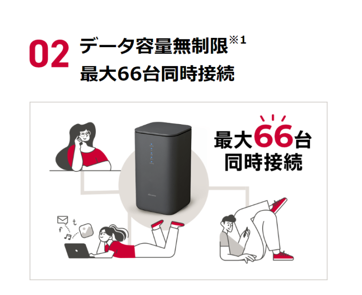 ドコモhome5Gは、大容量のデータ通信を行うと速度制限のかかる場合があります。