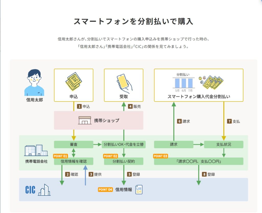 ご契約後、携帯電話会社がお客様のスマートフォン購入代金の契約内容を登録、購入代金のお支払状況を毎月記録します。その記録により、「信用情報」の履歴が作られていきます。