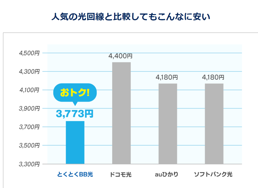 GMOとくとくBB光の月額料金は他社の光回線と比べてお得な設定プランです。