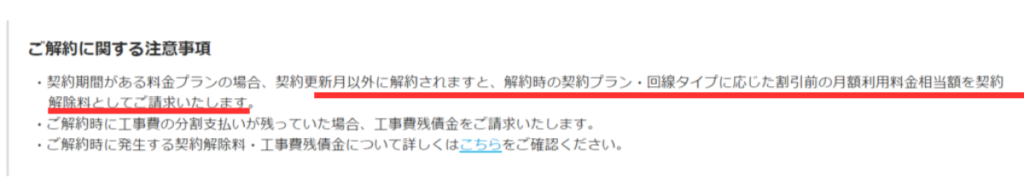 - 短期間の解約は工事費用の残債を支払う必要(36ヶ月以内)