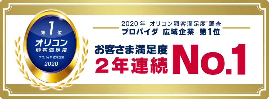 プロバイダー運営を20年以上しており、2020年のオリコン顧客満足度®ランキング プロバイダのランキングで総合1位。