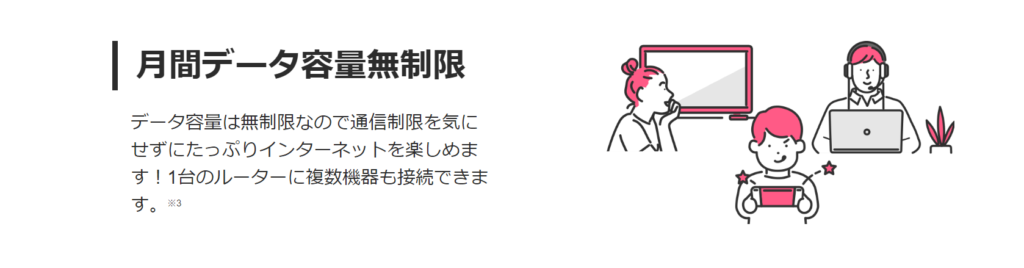 そのため、動画の視聴に時間を設けたり、データ容量を気にせずインターネットが楽しめるのは嬉しいポイントです。