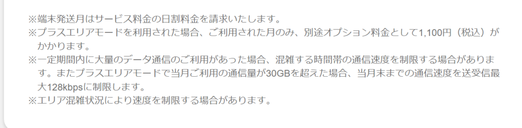 ただし数日間で大量のデータを消費した場合速度制限のかかる場合があるから注意してください。