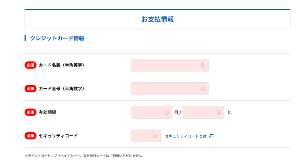 基本的に口座振替は対応していないので、クレジットカードを持っている必要があります。