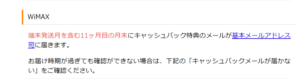 キャッシュバックのメールは、端末発送月を含む11ヶ月目の月末に届くので必ずチェックしましょう!