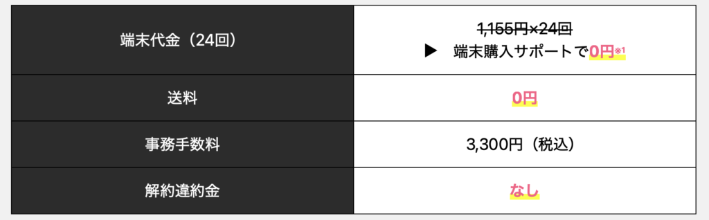 現在では違約金を払う必要はありません。ただし、本体の端末料金(27,720円)の残債があれば払うので注意しましょう。