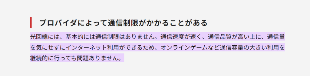 光回線のデータ通信量は無制限なので、気にすることなくインターネットを利用することができます。