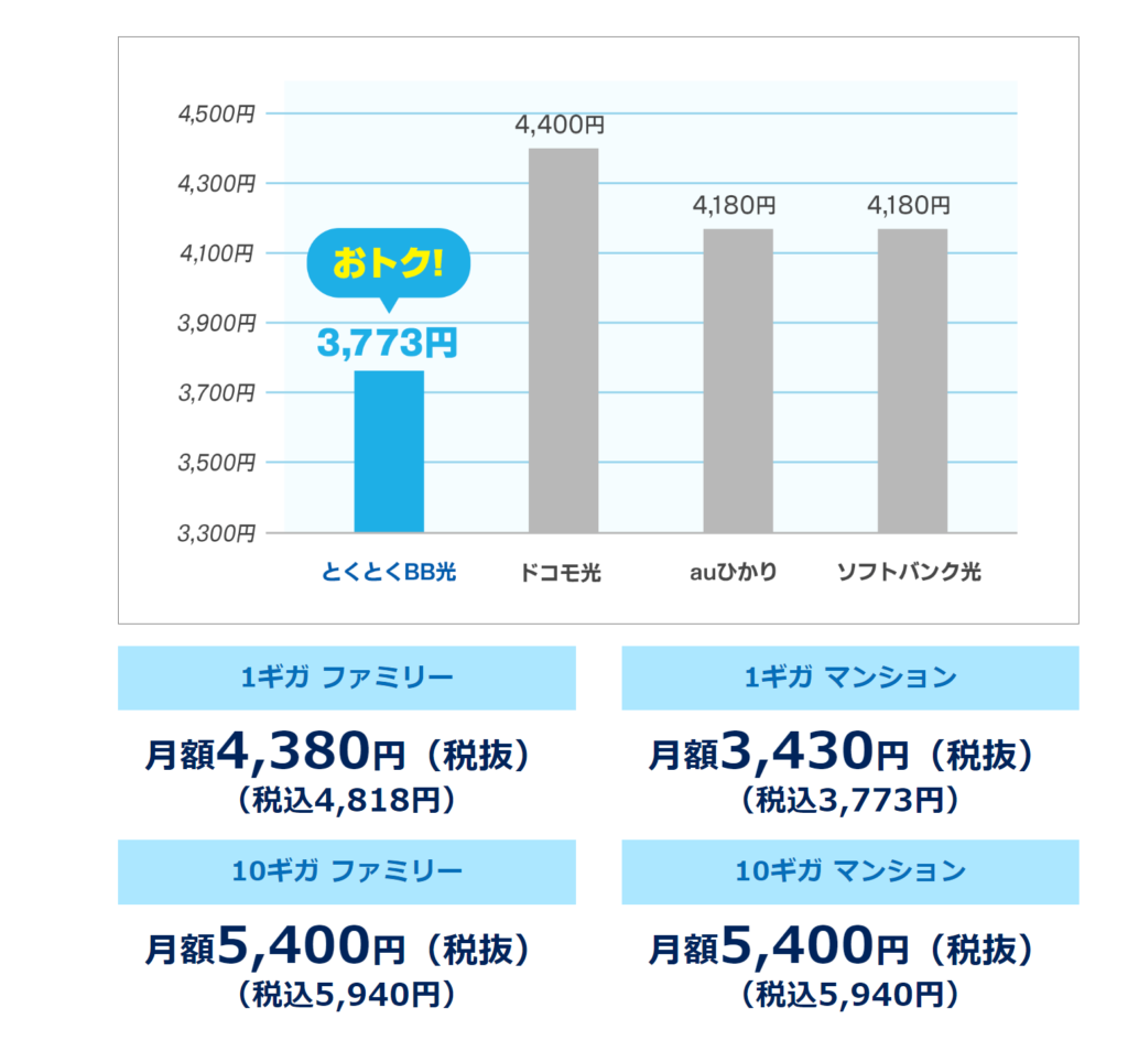 格安スマホはセット割り対象外なので、月額料金の安いインターネット回線を選ぶ必要があります。月額料金の安さならGMOとくとくBB光がおすすめです。セット割りこそありませんが他の光回線より月額料金が安く設定されています。
