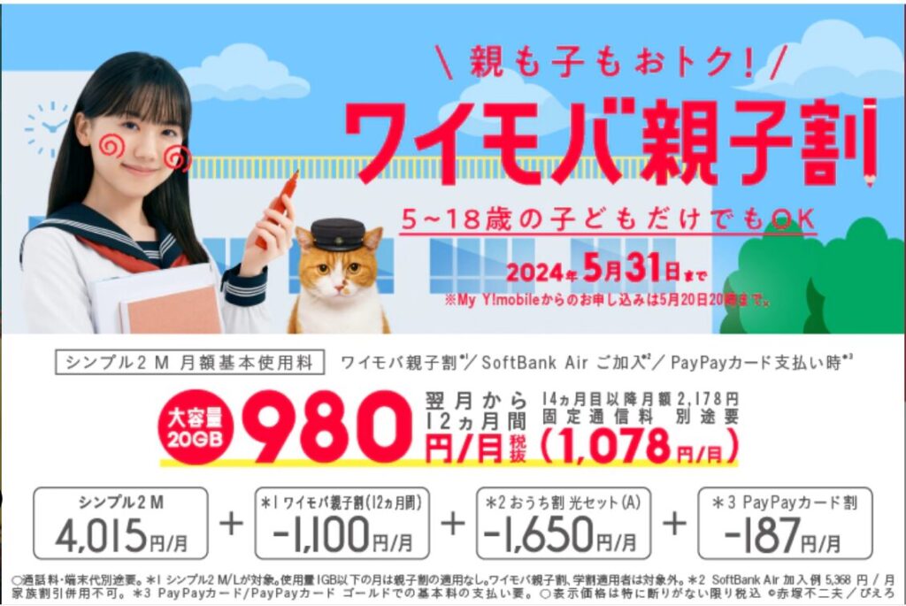 | ワイモバイル | 4Gまで:2,365円 3G超過~20Gまで:4,015円 20G超過~30Gまで:5,115円 | 3.7Gbps | 3,850円 | 1円~(2024年5月7日まで) |