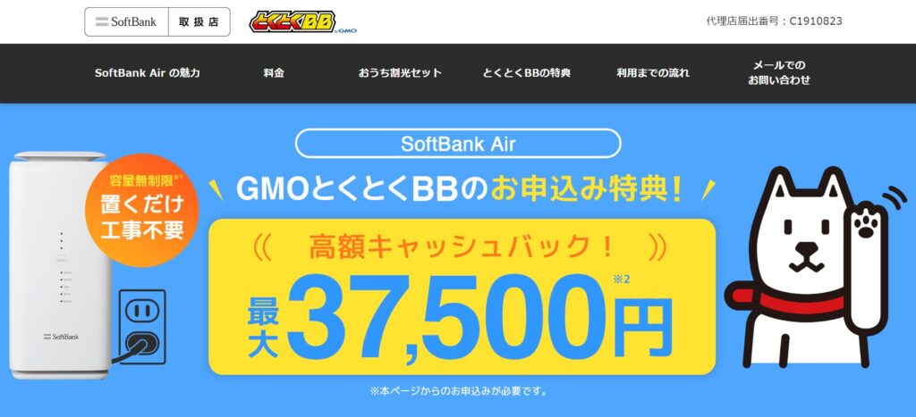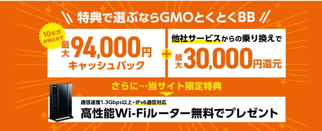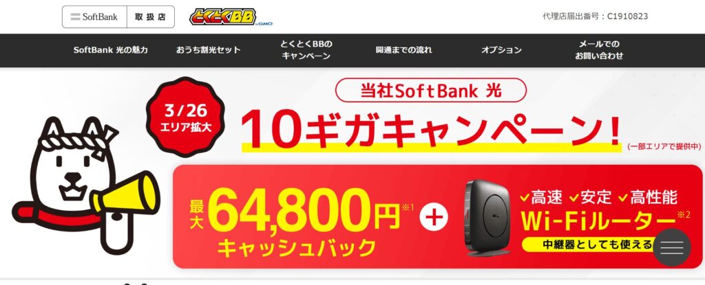 ※Softbank光・Rakuten光・ビッグローブ光・GMOとくとくBB光・@nifty光・OCN光・enひかり・おてがる光など