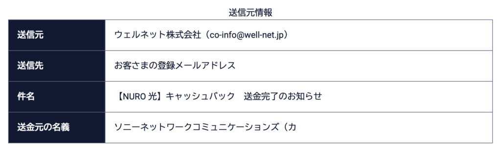 しょうはい、NURO 公式のnoreply@nuro.jpからメールでお知らせがあります。迷惑メールに入らないよう設定しておくといいですね。