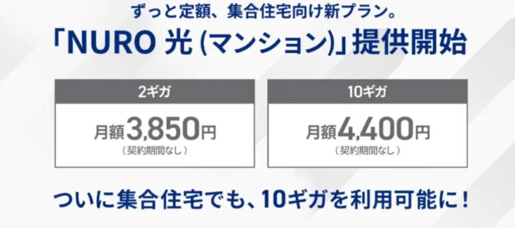 NURO光マンション新プランは、月額料金が安い設定になっています。