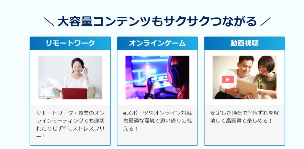 この章では、光ファイバー対応賃貸におすすめのネット回線を3つご紹介します。