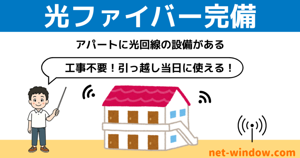 完備物件とは、回線工事が全て完了してすぐに光回線が使える物件をいいます。