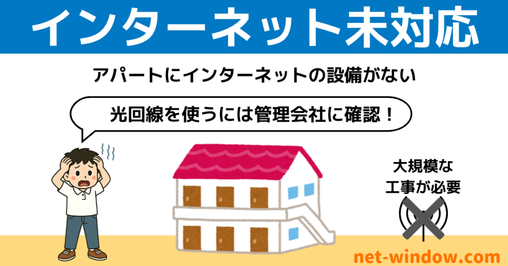 部屋の工事が完了するまで、インターネットが使えない点に注意しましょう。