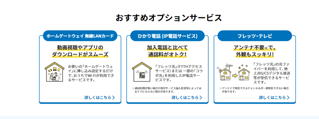 オプションは、光電話や光テレビなどのサービスがありますが、も加入しなくても契約できるので安心してください。
