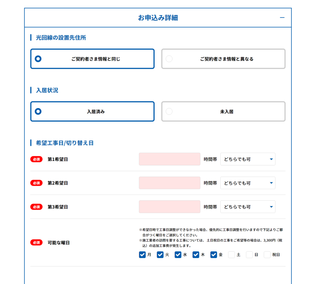 | 管理会社に確認する | 開通工事の予約をする(光回線) |