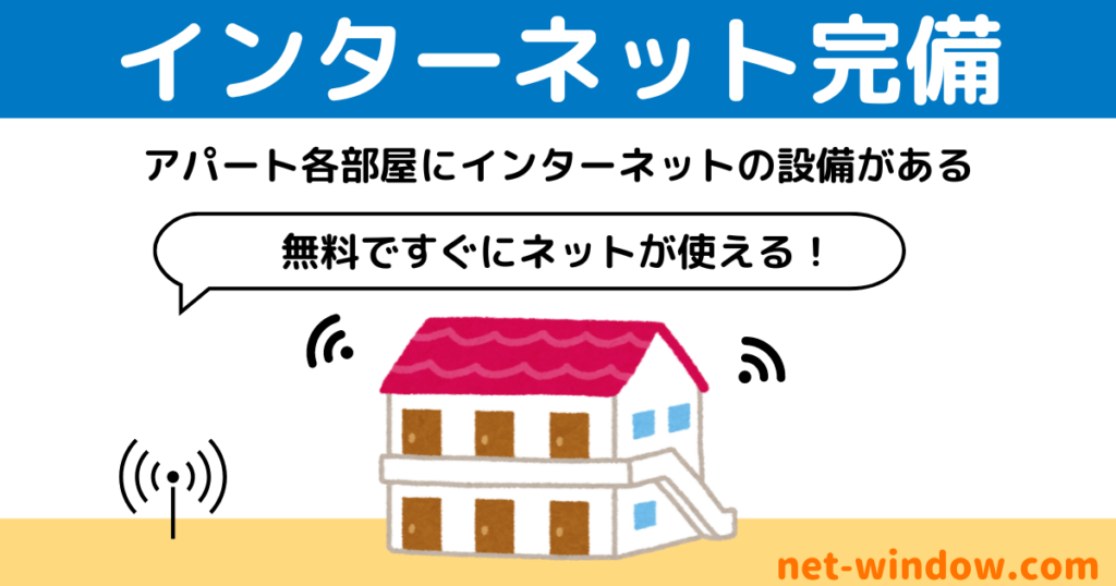 「完備物件」と「無料物件」は、引っ越し当日からインターネットが利用できます。