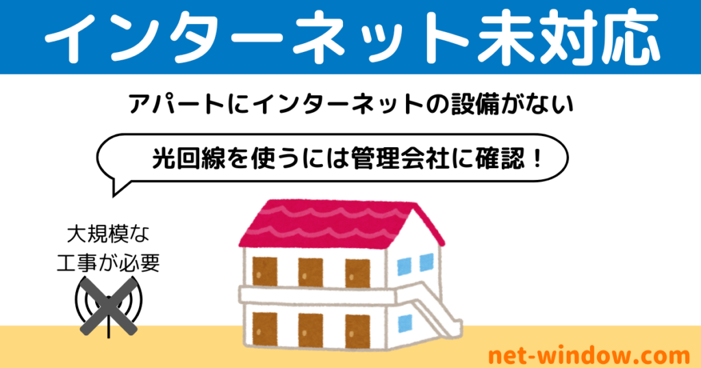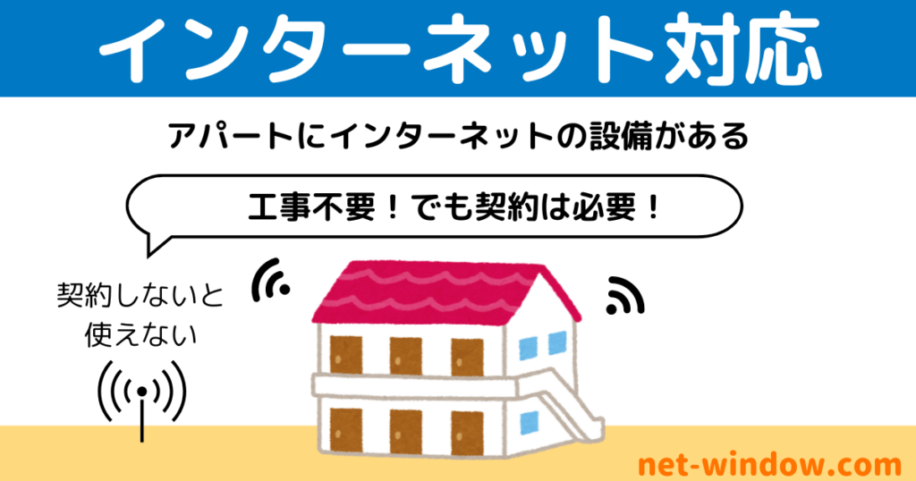 「対応物件」はプロバイダーの契約をしないとインターネットが使えません。
