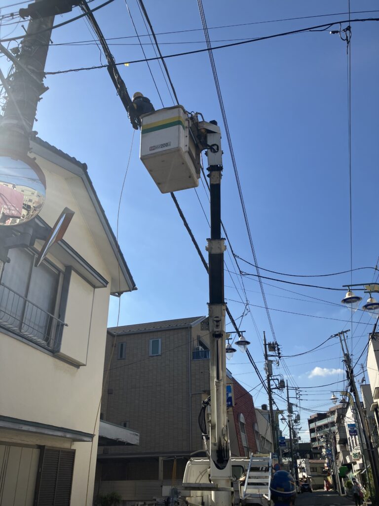 インターネット未対応の物件の場合、近くの電線から建物に光ファイバーを引き込む工事をします。