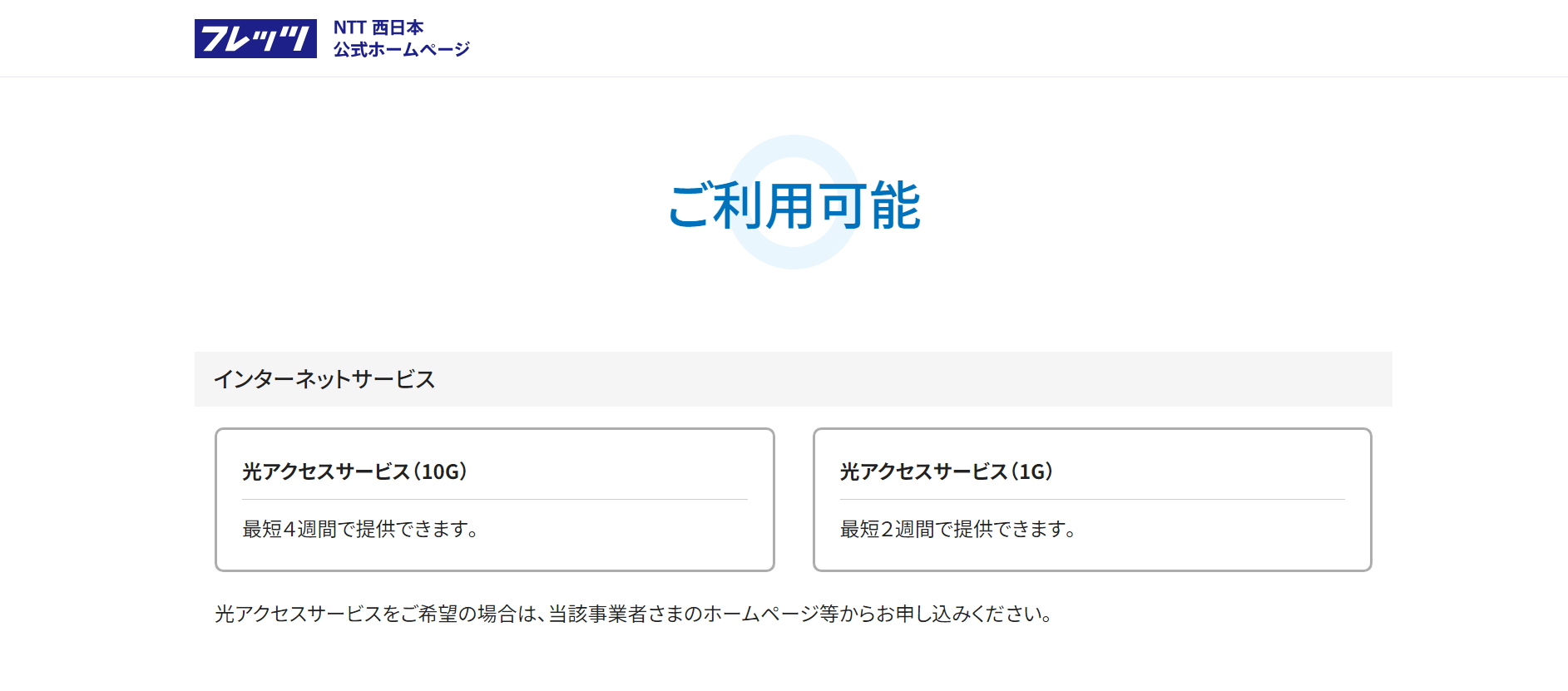フレッツ光の公式サイトで、お住まいの住所を入力すればインターネット環境を簡単に調べられます。。