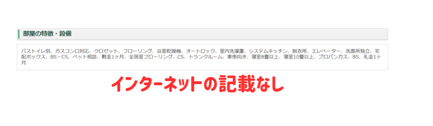 しょう入居前で物件の説明欄に記載がなければ、インターネットの設備はないことが分かります。