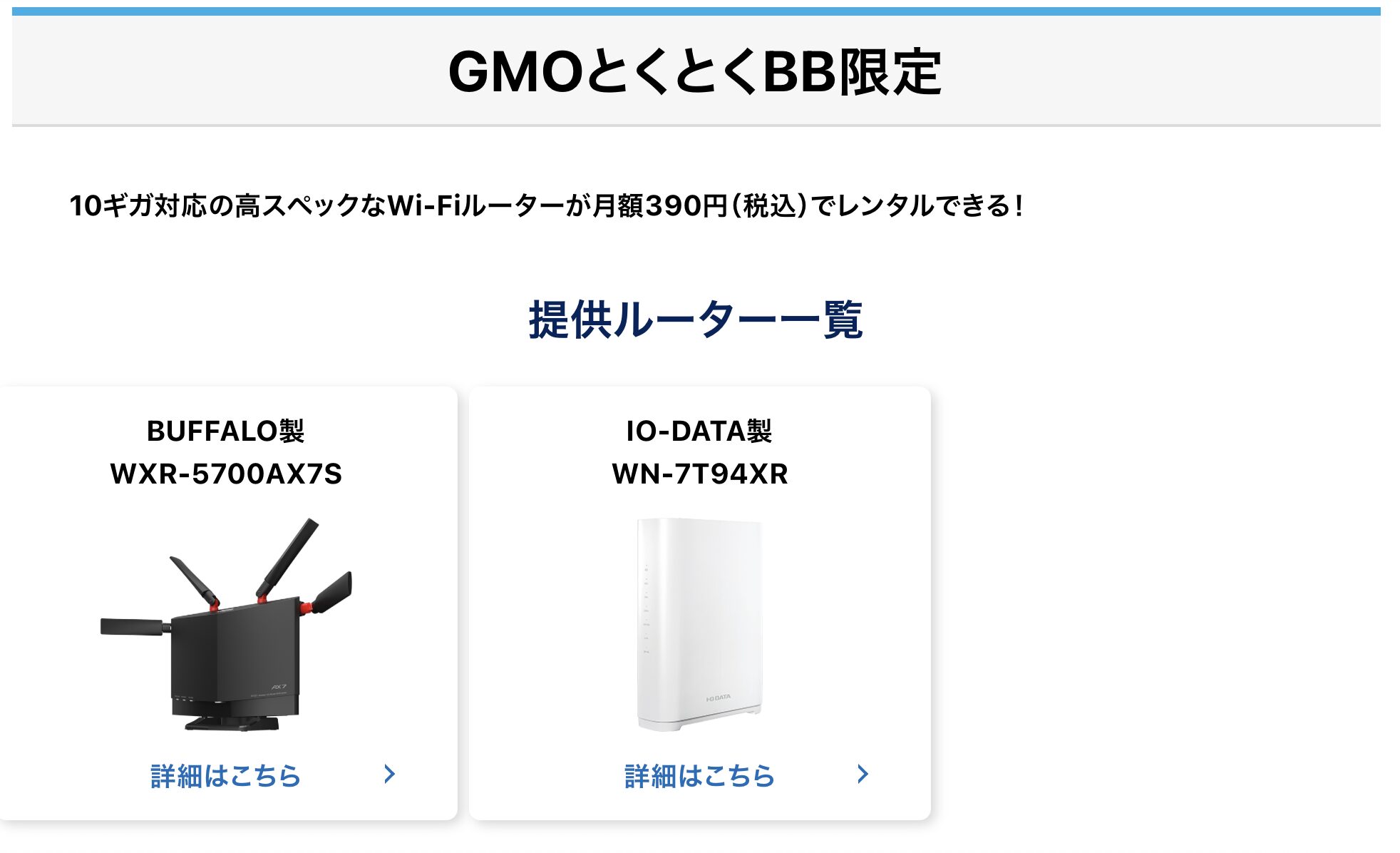 とくとくBB光では、相場よりも安く月額309円で10ギガの専用ルーターがレンタルできます。