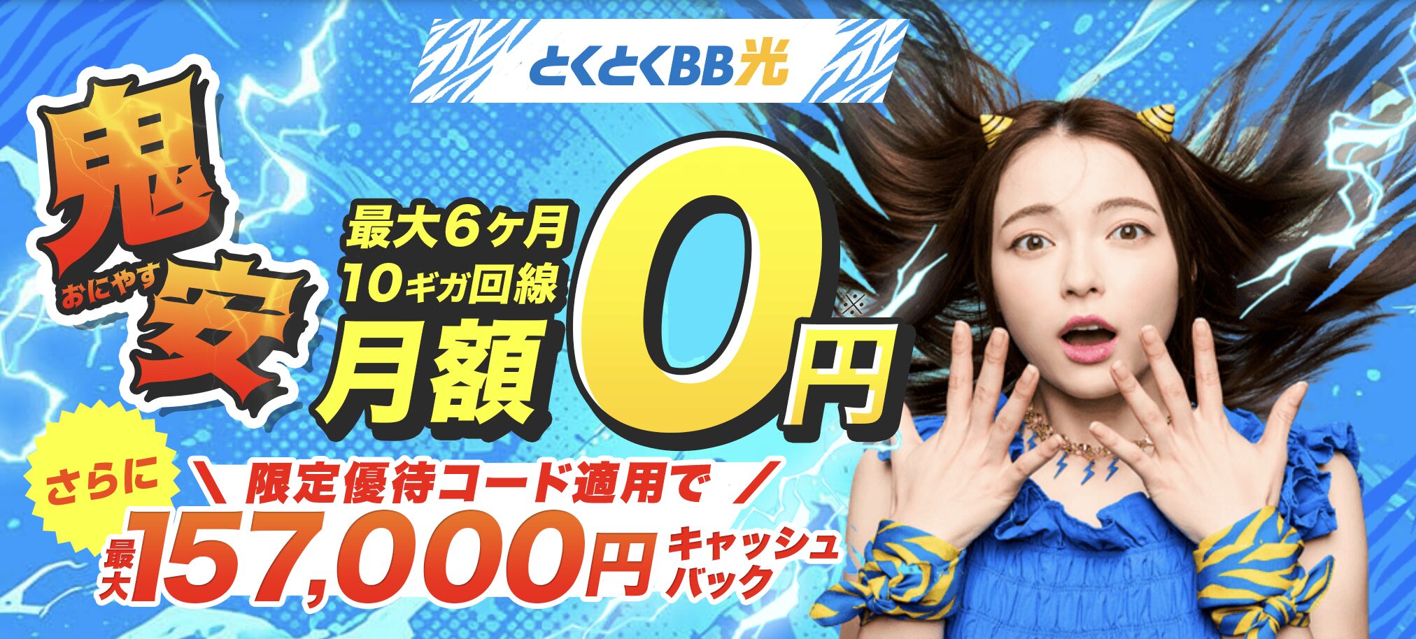結論から言うと、とくとくBB光は超お得な鬼得キャンペーンをしていておすすめの光回線です。