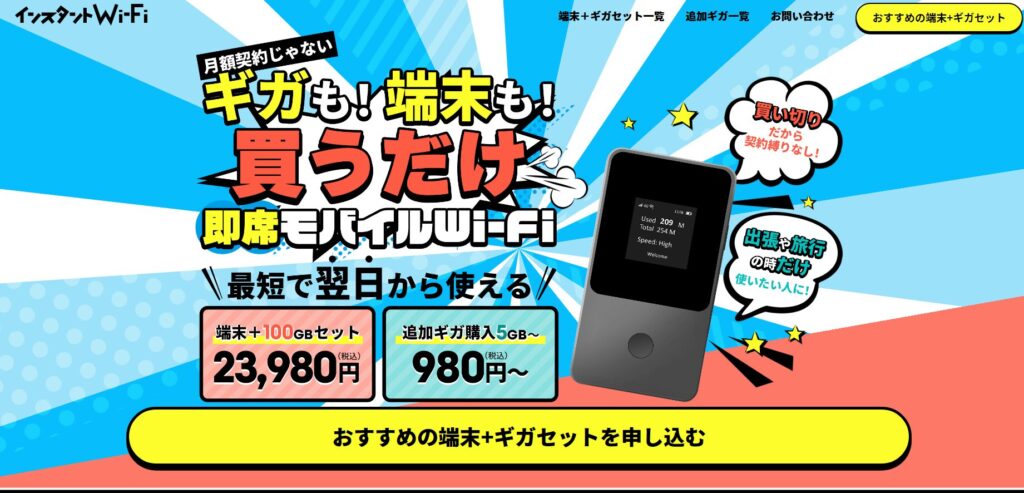 | インスタントWi-Fi | 19,280円~ | 1年間自由に使える 本体の端末代がかかる |