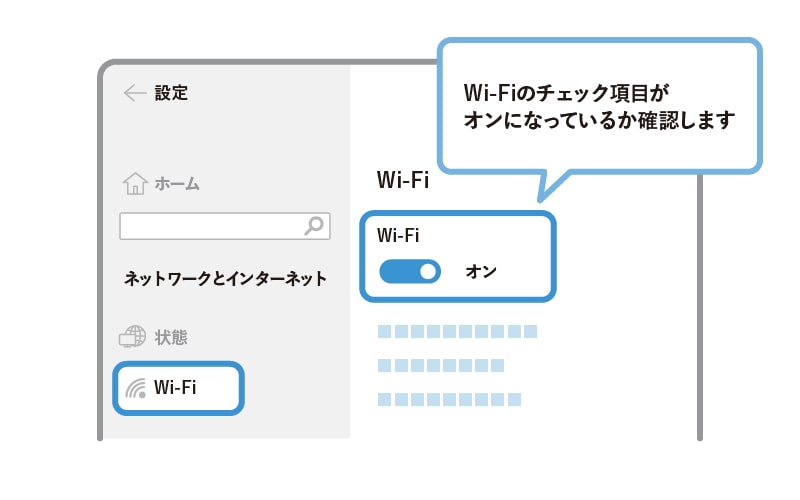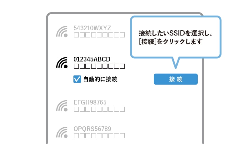 ホームルーターのスタンバイが完了したら、使用するスマホやパソコンでWi-Fiの設定を行います。