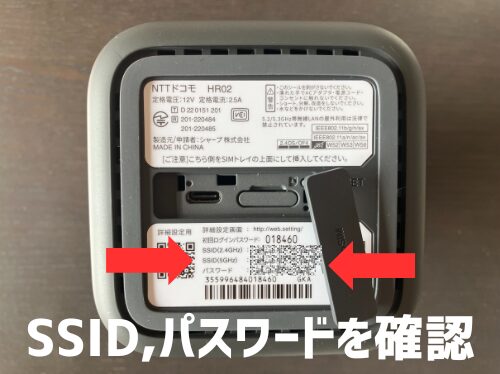 ルーターの底部に記載している「SSID」と「パスワード」を確認しておきましょう!