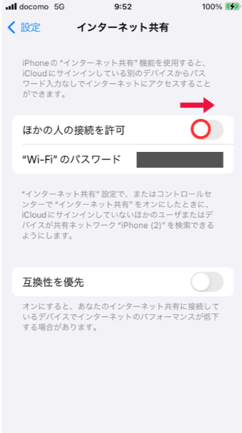 しょうテザリングは、iPhoneと接続するデバイスの2つの設定があります。それぞれ見ていきましょう。