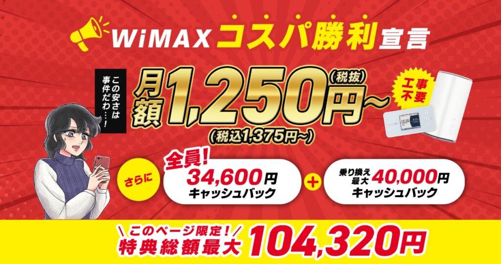 - とくとくBB WiMAX⇒最大100,000円以上のキャッシュバック